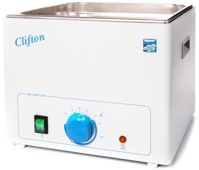 Nemíchaná nerezová lázeň o objemu 8 litrů s analogovou regulací teploty otočným regulátorem s cejchovanou stupnicí po 5°C, bez možnosti nastavení času. Vnější plášť lázně je opatřen antibakteriální povrchovou úpravou. Lázeň má vestavěnou ochranu proti přehřátí, s lázní je dodáván nerezový rošt. Lázeň disponuje uzamykatelným regulátorem teploty, který pomáhá předcházet nechtěné změně nastavení během experimentů. Součástí lázně je nerezový rošt a výpustný otvor.