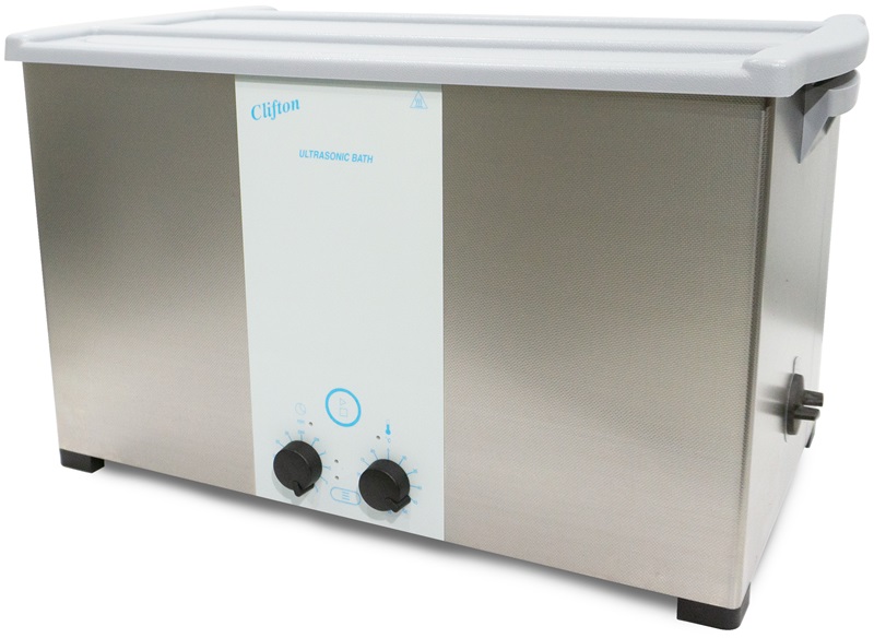 Výkonná, profi ultrazvuková lázeň s ohřevem ( PID regulace teploty ) v rozsahu +30°C ... +80°C v kroku po 5°C a nastavením času v rozsahu 1 ... 30 min. Nastavení se jednoduše provádí pomocí otočných knoflíků s cejchovanou stupnicí. Lázeň dokonale odstraní tuky, maziva, vosky, chemické sloučeniny, biologická residua apod. ze znečištěných předmětů a lze ji používat pro nepřetržitý chod (max. 6 hod.). Speciální keramická topná tělesa jsou umístěná po obvodu lázně, mají elektronicky regulován odběr proudu podle úrovně hladiny kapaliny v lázni, čímž dochází k výraznému snížení spotřeby el. energie. Vestavěná ochrana proti přehřátí. Lázeň je bezešvá a je vyrobena z kvalitní nerezové oceli, dvě madla na bočních stranách slouží ke snadné manipulaci s lázní.